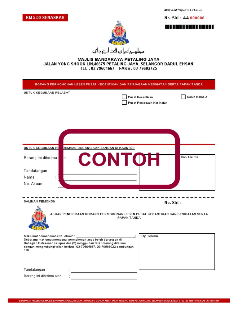 Contoh Borang Permohonan Dan Garis Panduan Pusat Kecantikan Dan Penjagaan Kesihatan