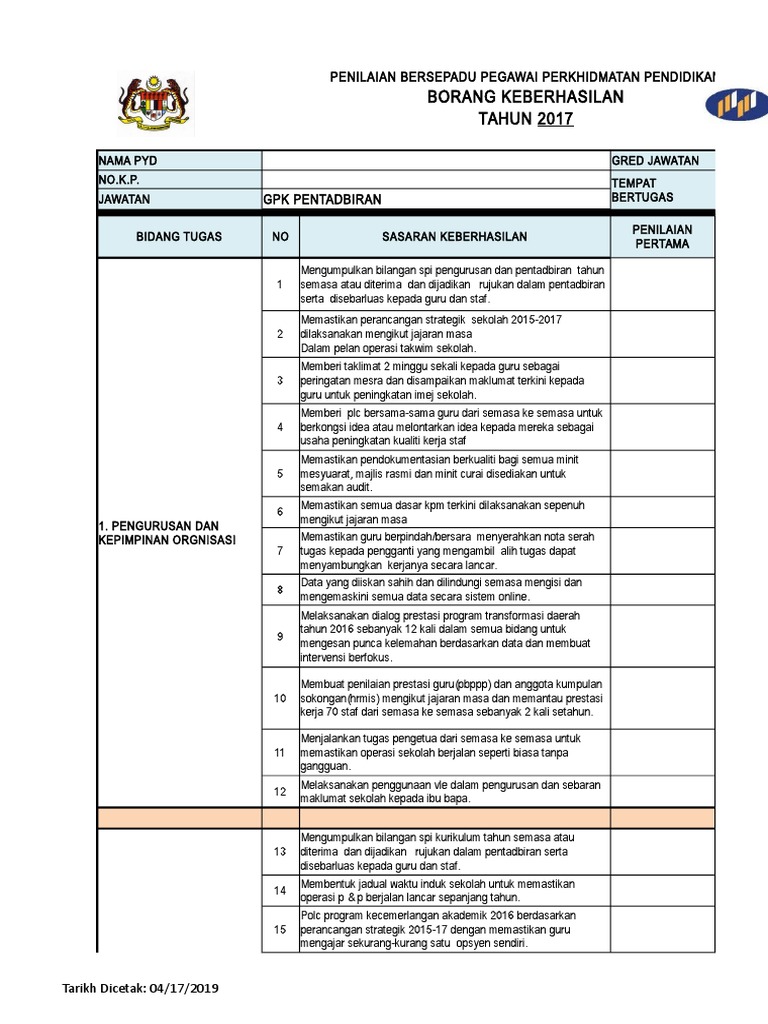 Borang Keberhasilan Gpk Pentadbiran