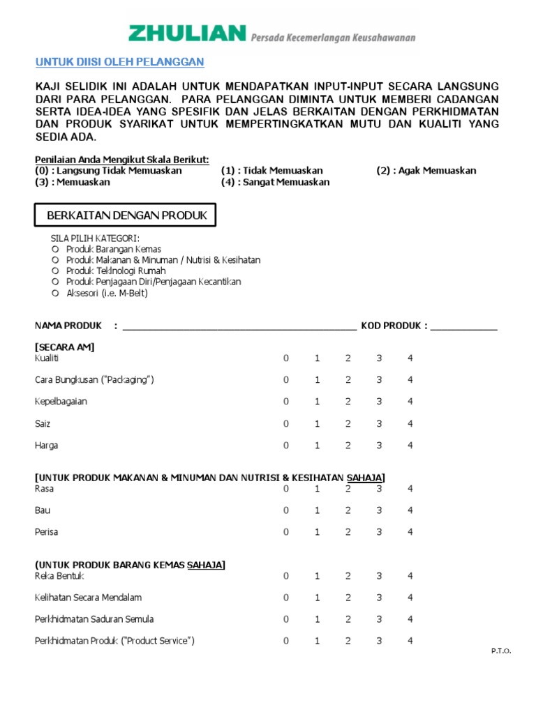 Borang Soal Selidik Kepada Pelanggan Terhadap Produk