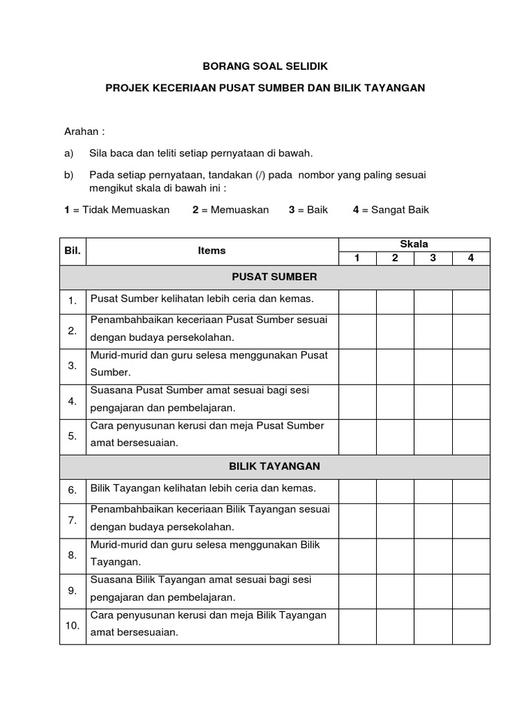 Contoh Borang Soal Silidik Penggunaan Pusat