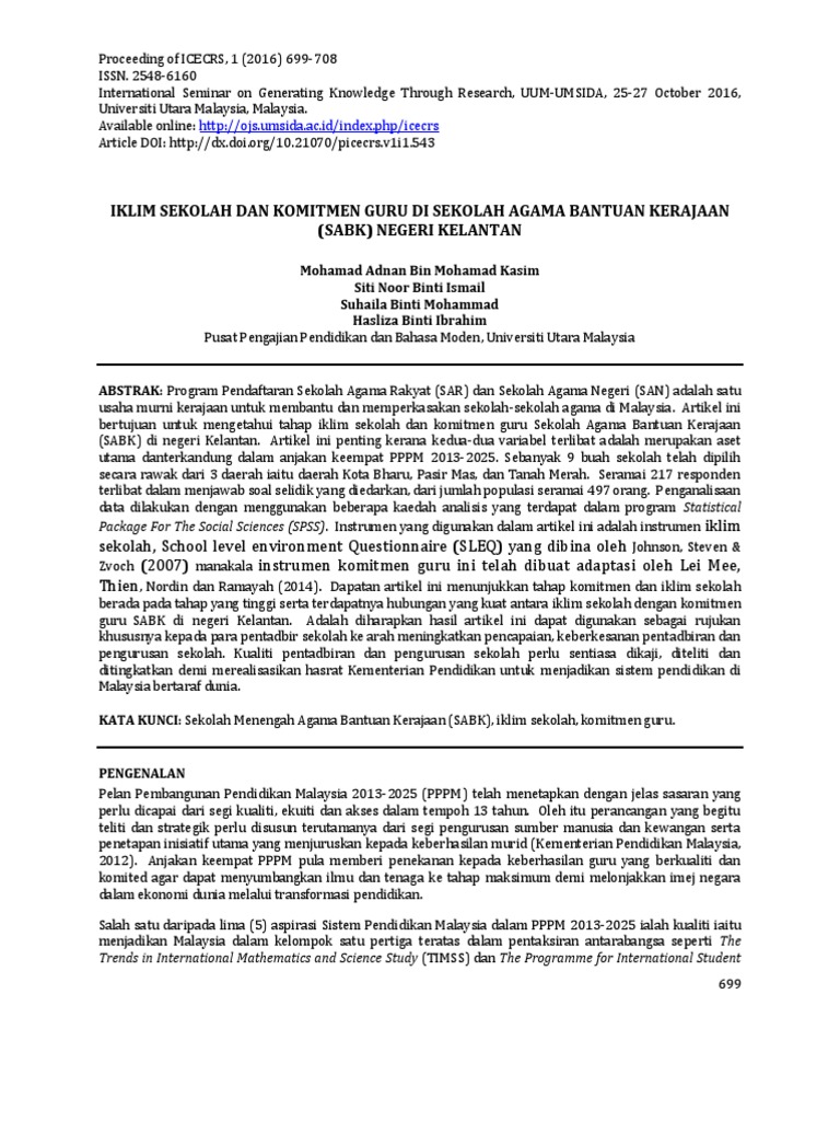 Iklim Sekolah Dan Komitmen Guru Di Sekolah Agama B Pdf