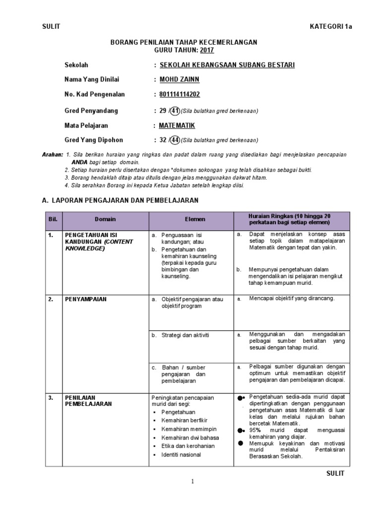 Borang Penilaian Tahap Kecemerlangan Guru Dg44 Pdf