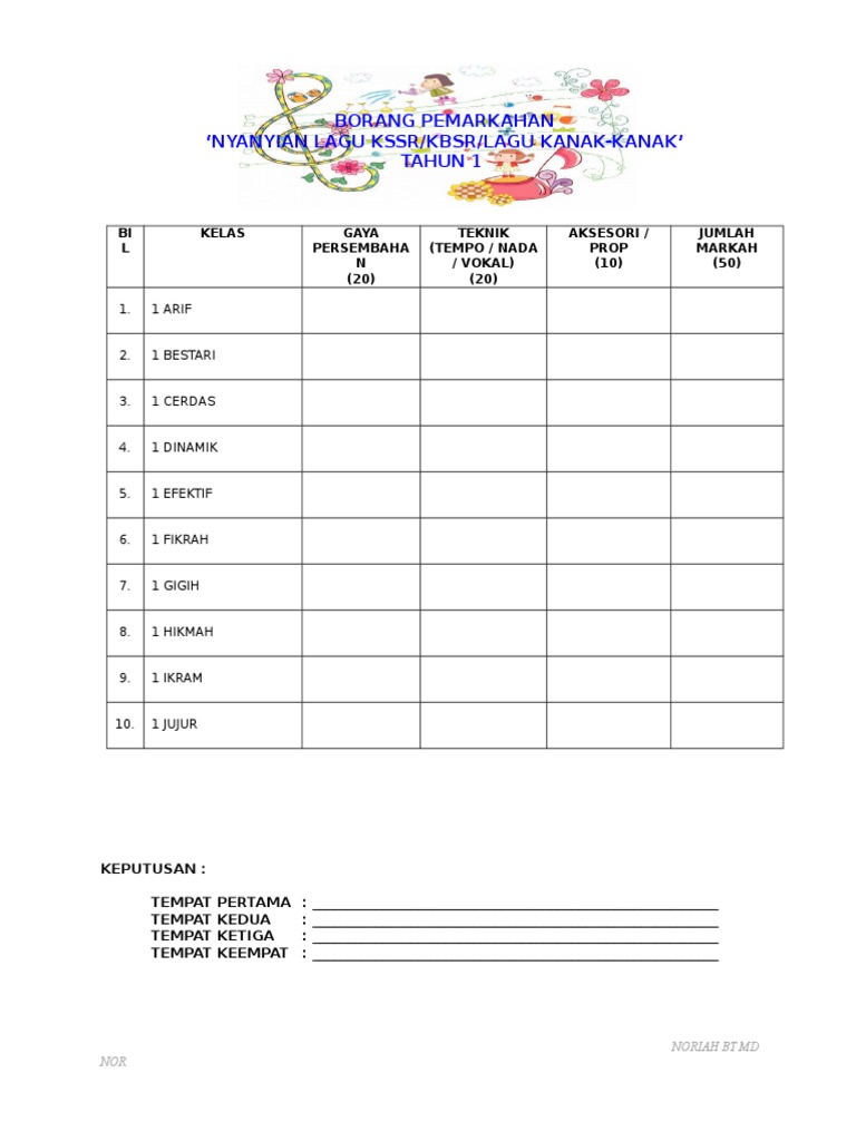 Here are some resumes of keywords to help you find your search the copyright owner is the original owner this blog does not own the. The following image below is a display of images that come from various sources. Contoh borang pemarkahan pertandingan nyanyian.